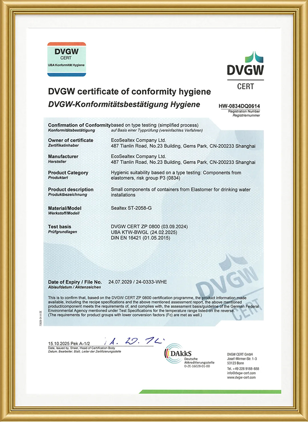 SealTex索拓再传捷报!又一款无石棉环保密封材料获KTW-BWGL 饮用水认证