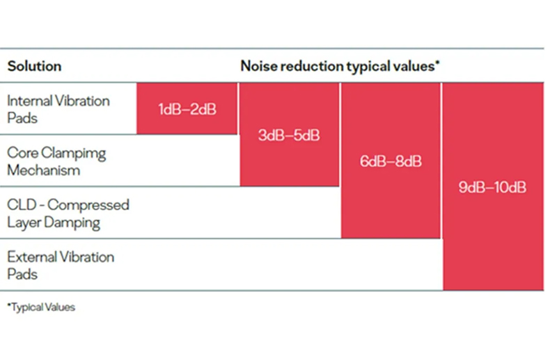 这些解决方案在实际变压器安装中已证明能够降低高达10分贝的噪音,并隔离超过95%的振动。